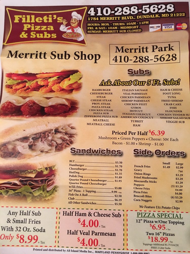 Introducing the menu at Merritt Sub, located on 1784 Merritt Blvd in Dundalk, MD. This cozy spot offers a range of cheesesteaks with many vegetarian options, as well as classic combos like chicken wings and fries. The reviews rave about the generous portions, tasty sandwiches, crispy wings, and friendly service. Customers love the old-school vibe and consistently good value. Be sure to try the overstuffed cheesesteak with American cheese, or opt for a massive turkey sub piled high with toppings. Whether you dine in or takeout, Merritt Sub promises a satisfying meal that will keep you coming back for more. Don't miss out on this hidden gem in Baltimore – it's a must-try for any sub lover!